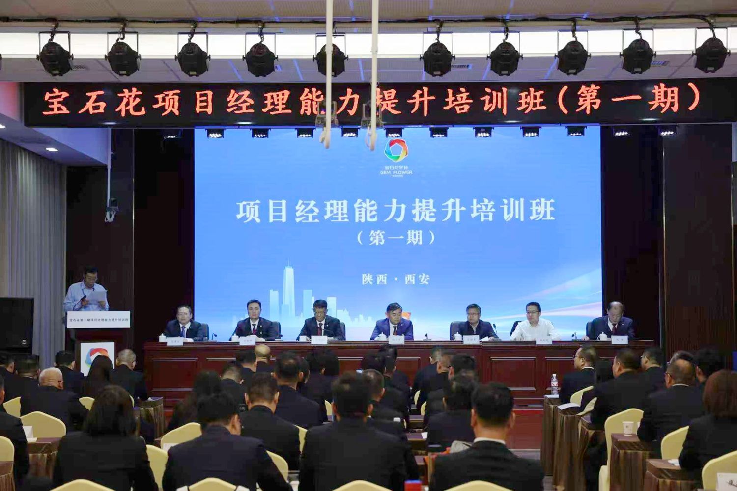 10月20日上午,宝石花物业管理有限公司(以下简称“宝石花物业”)项目经理能力提升培训班在我校明德校区明德楼报告厅顺利开班。宝石花物业董事长、党委书记张小军、执行总裁李照斌、副总裁刘荣坤、副总裁、长庆油田地区公司总经理陈军、我校党委委员、副校长张骁勇、继续教育学院院长林红先出席开班仪式。来自宝石花物业23家单位70名学员参加培训。仪式由宝石花物业执行总裁李照斌主持。